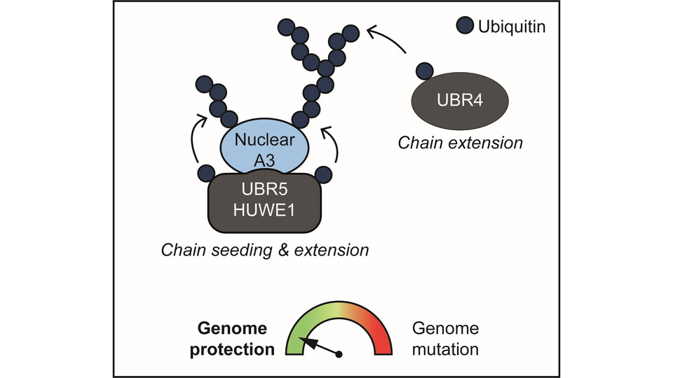 Cytidine deaminases catalyze the conversion of cytidine to uridine in nucleic acids, a process that can drive extensive mutagenesis. While this activity is beneficial during antiviral immune responses, uncontrolled deamination can damage host genomic DNA and thereby promote cancer. In humans, seven members of the APOBEC3 (A3) family of cytidine deaminases have been linked either to antiviral defense or to cancer-associated mutagenesis. In their new study, the Versteeg lab identifies the ubiquitin–proteasome system as a key pathway for selectively degrading cancer-associated A3 proteins, while the cell protects antiviral A3 enzymes from degradation, thereby addressing the fundamental challenge of controlling ‘DNA hypermutators’ that are both essential for immunity and potentially harmful to genomic integrity.