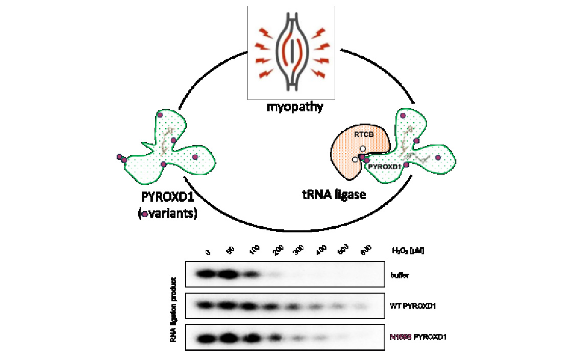 Besides the core proteins critical for the assembly of the tRNA-ligase complex, an “expanded” set of subunits sustain its functionality. The latest such identified protein is PYROXD1, a “private” guardian shielding RTCB and its sensitive metal ions from oxidative damage, thus preserving pre-tRNA splicing and UPR in (aerobic) animals. New findings give an unexpected twist to PYROXD1 story: its variants cause a rare myopathy in humans. Do pathogenic variants fail to sustain the tRNA-LC, and thus turn unconventional RNA splicing a new process of interest in muscle diseases? Which aspects of (multi-layered) PYROXD1 biochemistry are affected in these variants? Finally, can their understanding pave the way to therapeutic approaches?